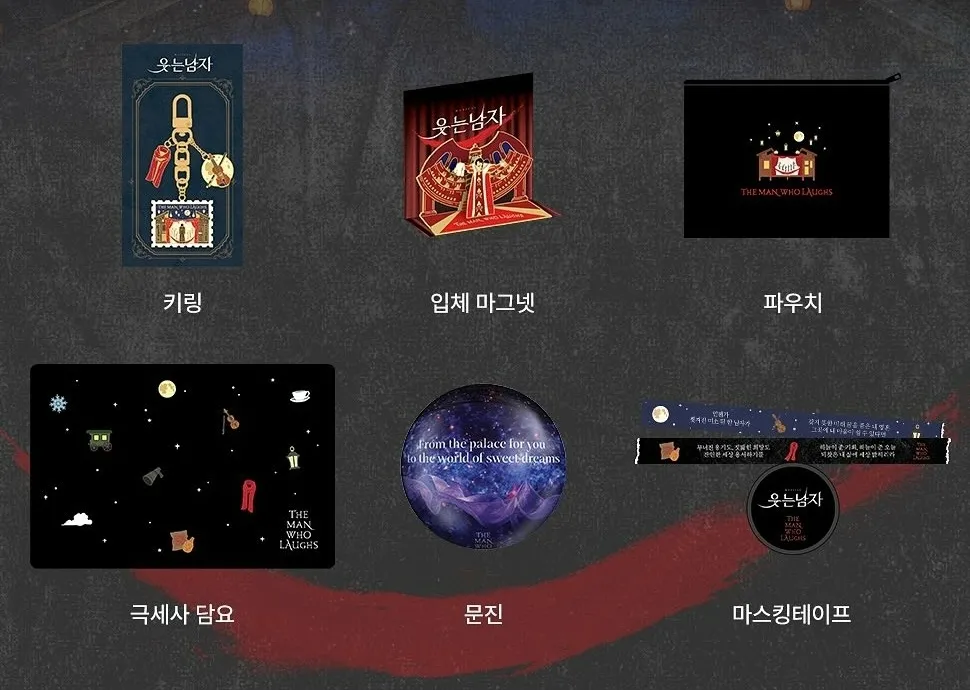 웃는남자 MD 는 대본집, 악보집, 포스터, 문진, 마스팅 테이프등 정말 다양했습니다.