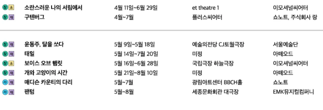 탄탄한 작품성의 구텐버그등이 봄에 올려진다. 팬텀은 오연으로 윤동주, 달을 쏘다는 칠연으로 무대에 오른다.